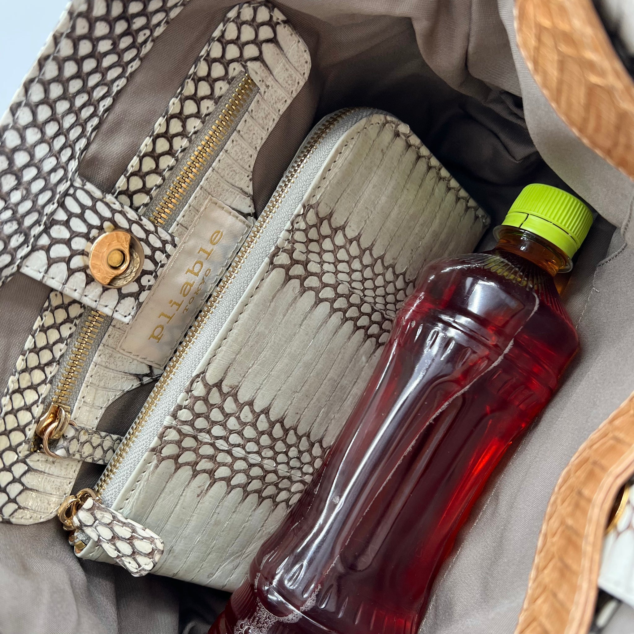 長財布や500mlのペットボトルも楽々入るので、普段使いにぴったりのサイズ感です。もちろんショルダーを取り外せば、手もちでもつかっていただけますよ。